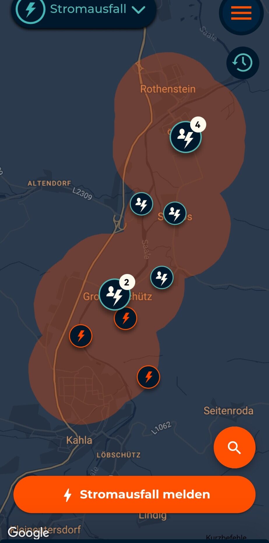 Aktuell ist die Gegend von Kahla bis Rothenstein ohne Strom. Techniker arbeiten dran…… und sie waren erfolgreich – Strom wieder da.