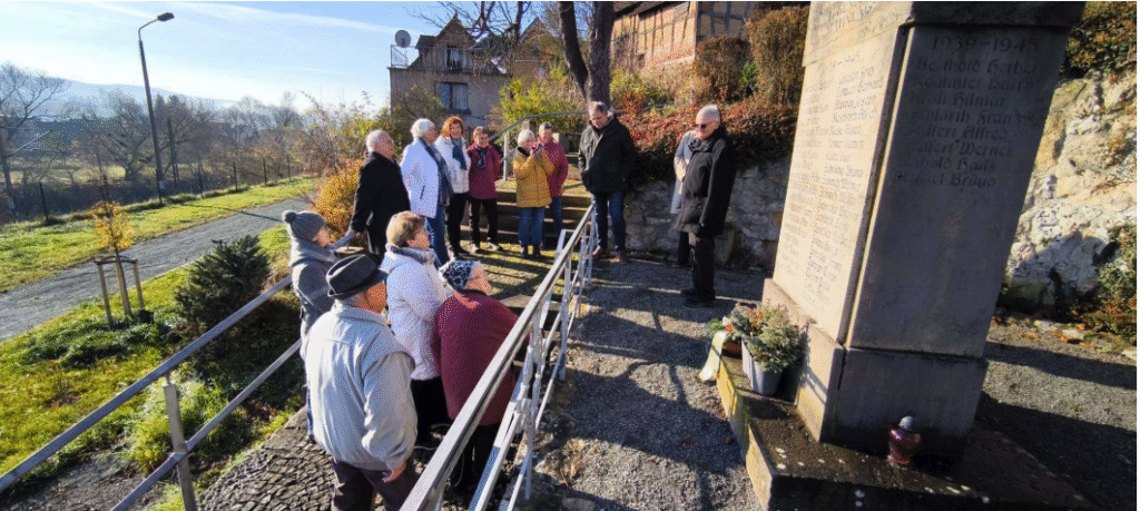 In der kurzen Rede des Vereinsvorsitzenden wurde auch darauf hingewiesen, dass durch die derzeit geplante militärische Wiedernutzung des Bunkers in Rothenstein auch die Angst in der Gemeinde wächst. Weiter ging es zu den Gedenksteinen in Rothenstein, wo an die Opfer beider Weltkriege aus diesem Teil unserer Gemeinde sowie an die Opfer des Stalinismus erinnert wurde.