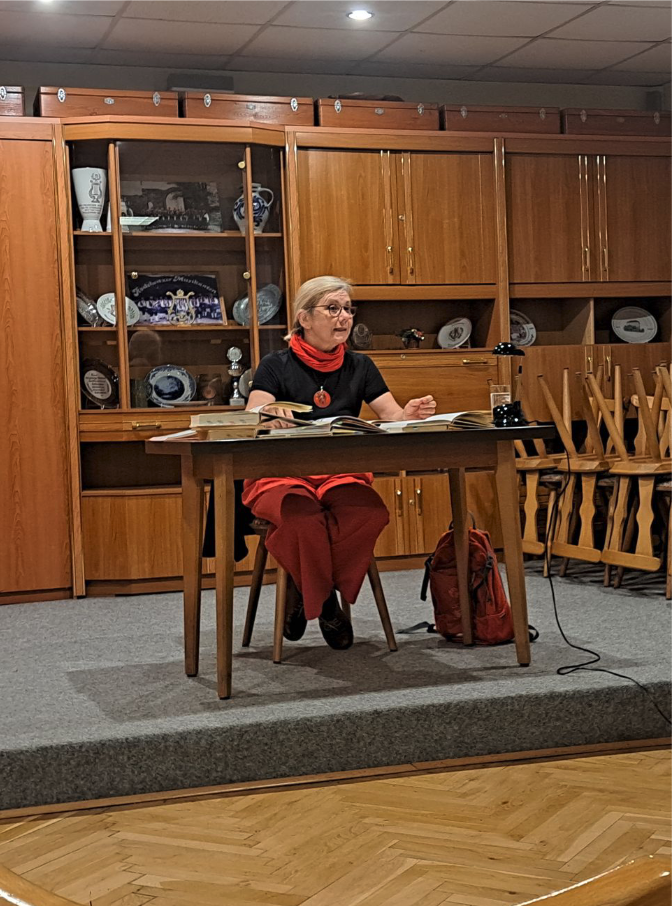 als am 25.9.25 der Geschichts- und Heimatverein zu einer „nicht ganz ernst zu nehmenden“ Lesung mit Christina Möbius ins Sängerheim eingeladen hatte. Sie hatte eine Fülle von Gedichten und Geschichten zusammengestellt und nahm die Zuhörer mit auf die „Spachspielwiese“.